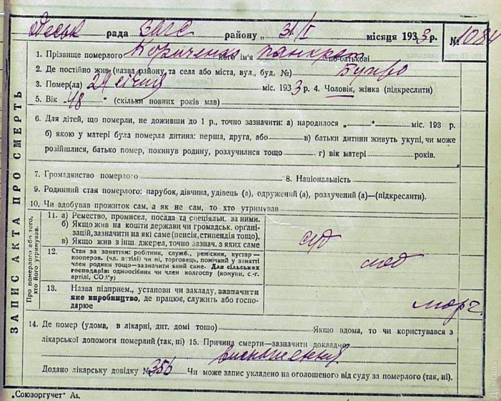 Одесситы становились свидетелями гибели беглых колхозников, умиравших прямо на улицах. Согласно книгам органов регистрации актов гражданского состояния, если в 1932 году в городе было зарегистрировано всего 29 трупов неизвестных, то уже в 1933-м – 721. В целом же по одной Одессе РАГСы зафиксировали те два года 971 умершего от голода. А еще городские учреждения принимали из области многочисленных детей, ставших сиротами в результате трагедии.