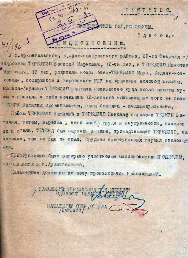 «Доложу, что по селам Секретарка и Тридубы Криво-Озерского района имеются случаи каннибализма, а именно: