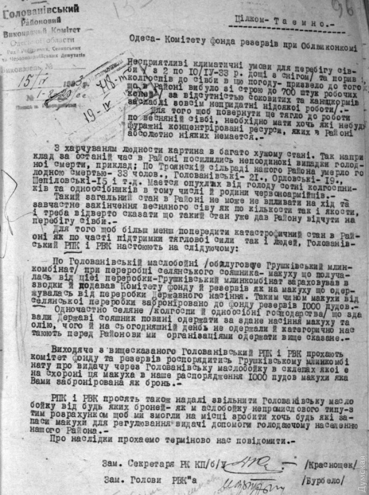 Еще раз: о тех событиях написано очень много, поэтому смысла снова анализировать, наверное, нет. Ко Дню памяти «Думская» решила просто привести несколько цитат из документов и воспоминаний очевидцев Голодомора, найденных и опубликованных сотрудниками государственного архива Одесской области.