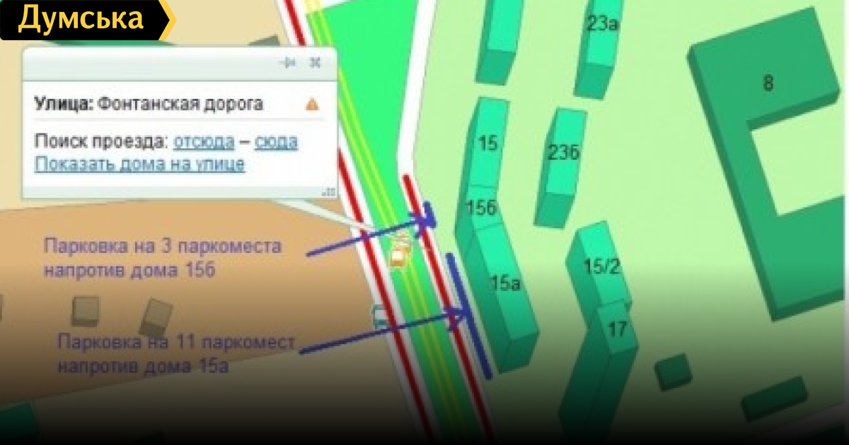 «Общественный контроль дорог» объявил войну незаконной парковке, с которой одесситка воюет больше года Как пишет портал 4road.net, «Общественный контроль дорог» объявил войну незаконной парковке, с которой больше года воюют жители одного из домов по Фонтанской дороге. К руководителю «Общественного контроля дорог» Сергею Дубенко обратилась одесситка с просьбой помочь ей в решении проблемы с незаконной парковкой возле ее дома. Выяснилось, что в «Перечне специальных земельных участков, отведенных для организации и проведения деятельности по обеспечению паркования транспортных средств на территории г.Одессы» парковки по адресу Фонтанская дорога, 15а не существует, зато есть две парковочные площадки по адресу Фонтанская дорога, 15 с 7-ю и 6-ю паркоместами на каждой.