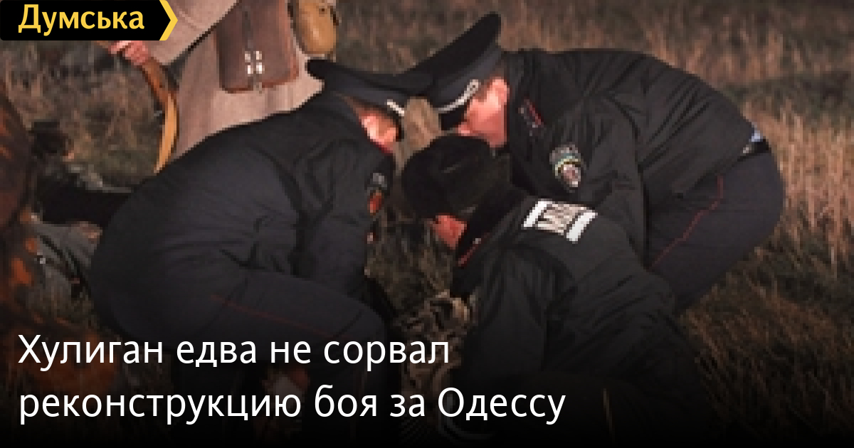 Реконструкция боя за Одессу, которая проходила накануне поздно вечером на 411-й батарее, оказалось под угрозой срыва. Во время кульминационной сцены атаки советских войск на окопы противника на поле выбежал один из зрителей, который упал рядом со стреляющими солдатами.