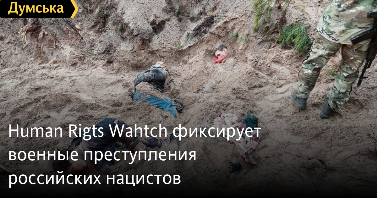 Международная правозащитная группа Human Rigts Wahtch собрала множество свидетельств военных преступлений российских оккупантов на захваченных территориях Киевской, Черниговской и Харьковской областей.