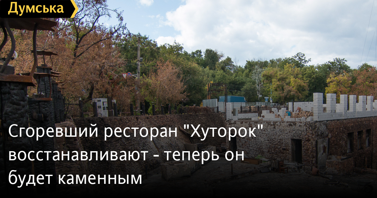 Ресторан «Хуторок», полностью уничтоженный пожаром 24 июля, начали восстанавливать. Рабочие расчищают территорию общепита и возводят стены верхнего этажа — теперь они будут из пенобетона, а не деревянные, как раньше.