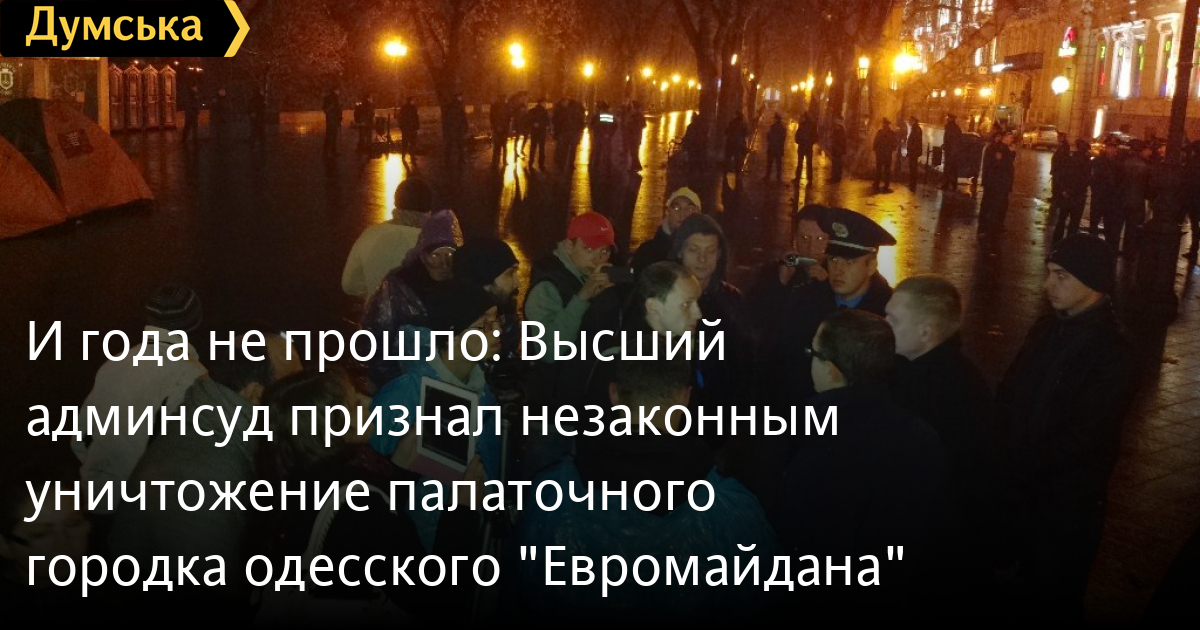 Напомним, этот вердикт стал основанием для ночной ликвидации палаточного городка «евромайдановцев» на Приморском бульваре, которая сопровождалась актами насилия со стороны правоохранителей и коммунальщиков. После разгрома городка были задержаны трое активистов организации «Демократический Альянс», в том числе глава областной ячейки Алексей Черный. Впоследствии они были привлечены к административной ответственности.