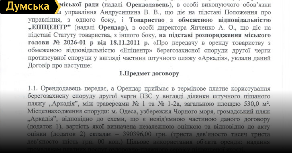 Напомним, договор этот был подписан по распоряжению мэра Одессы Алексея Костусева, который тем самым основательно подставил областную прокуратуру, создав предпосылки для проигрыша последней судебной тяжбы против «Эпицентра».