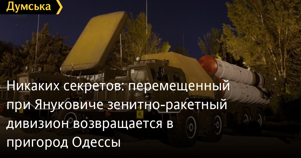 Дивизион 160-й зенитно-ракетной бригады Воздушных сил Украины передислоцируют из военного городка в поселке Радостное (бывший поселок Жовтневая Революция) Беляевского района в пригород Одессы — село Нерубайское.