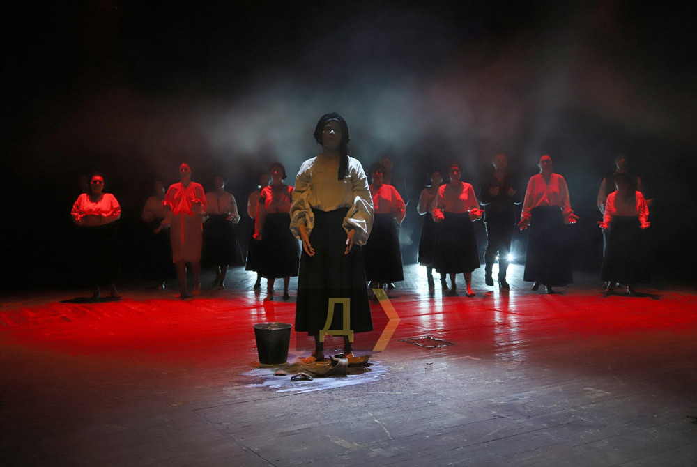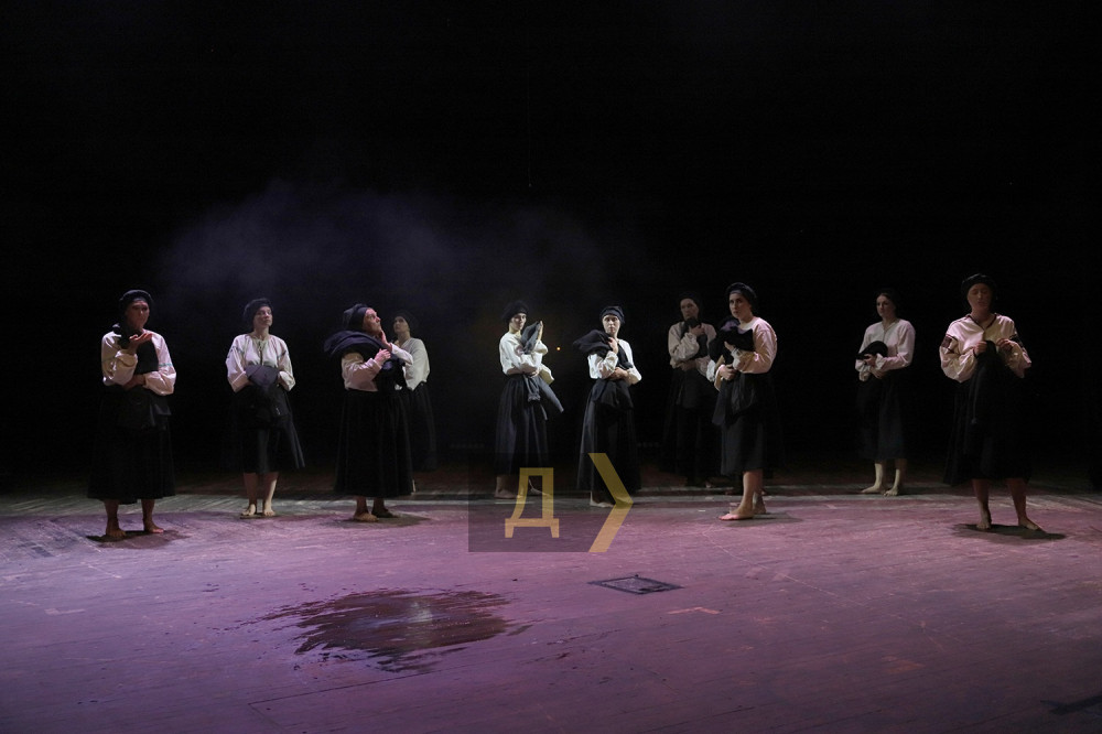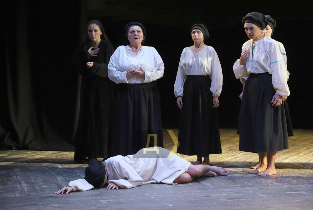 Горе та страждання підштовхують шукати заступництва у Господа, і до спільної молитви закликає дванадцять вдів одна з них, Софія (Тамара Лукаш раніше працювала в Миколаєві, це цінний здобуток для театру, вона просто створена для трагічних ролей). В образі єврейської жінки Естер – пристрасна та фактурна Юлія Амелькіна, її дочку Ханну, що стала зв’язковою УПА, грає зворушлива, проте вражаюча внутрішньою силою Марія Буймович. Ввелися у постановку Богдана Шуманська, Анастасія Матусевич, Павло Примак та Олена Нагаєва.