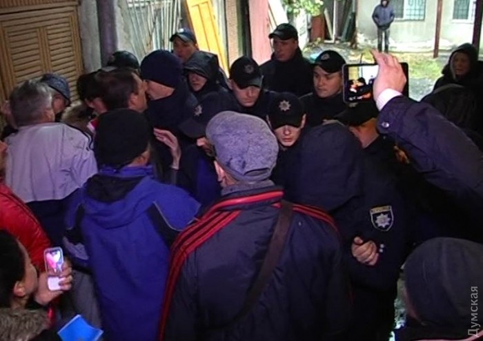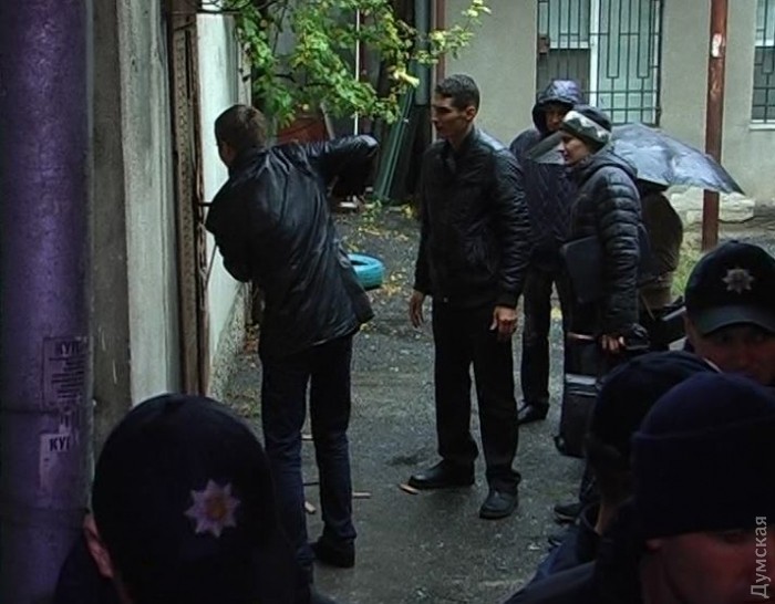 Прибывший профессиональный взломщик по вызову, невзрачный мужичок с незапоминающейся внешностью и цепким взглядом, осмотрелся, отметил цепь полицейских и собравшийся, несмотря на непогоду, народ, который снимал все на телефоны и нецензурно ругал полицию и городские власти, после чего… отказался вскрывать двери. За лом взялся молоденький юрист департамента коммунальной собственности одесского горсовета. Который не захотел представиться. Полтора часа бедолага выворачивал двери ломом. Поранился. И все это под лютым дождем. Из толпы кричали: «Раб!» (прошу данного юриста отметить какой-нибудь наградой! Хотя бы чай с малиной дайте, что ли…), но когда бедняга двери вскрыл, то оказалось, что АТОшники забаррикадировали вход разным хламом. Который юрист начал медленно разбирать.