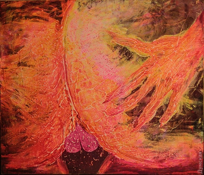 Название для такой выставки могло бы звучать, м-м-м, примерно так: «Йони-страдания». Героями, вернее, героинями живописных полотен Лены являются женские половые органы в различном состоянии. Подобная тема в искусстве, конечно, не нова, поднял ее еще в девятнадцатом столетии Гюстав Курбе (до него женский лобок изображали без растительности, а он еще и сконцентрировал внимание на самом органе, создав картину «Все мы вышли отсюда»). Одессит Вадим Гринберг мастерил свои «пусси», используя кукурузные рыльца, получалось довольно забавно. А выставка… почему бы и нет? Вспоминается эпизод из сериала «Секс и город», когда в галерее современного искусства Шарлотта открывает вернисаж, и на масштабных картинах – огромные Йони! Потом художник, пожилой и семейный, уговорил и саму Шарлотту позировать для картины. Другое дело, одесситы вечно норовят затащить с собой на выставку малых детей, а оно им надо? Вот и комплексуют галеристы.