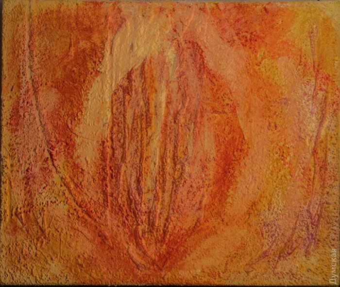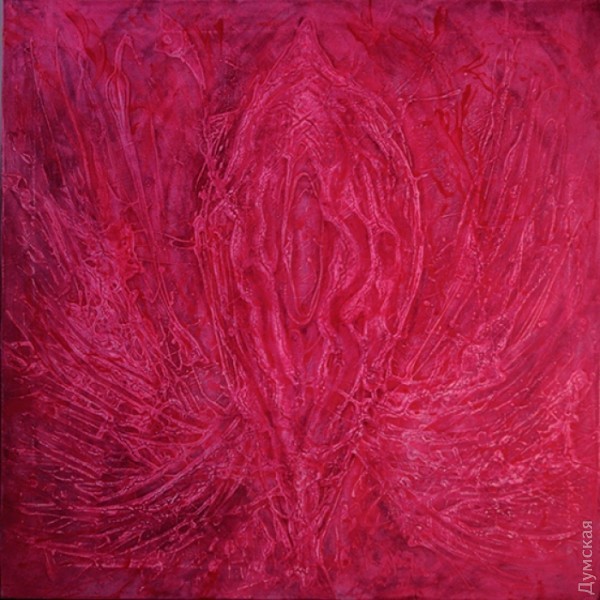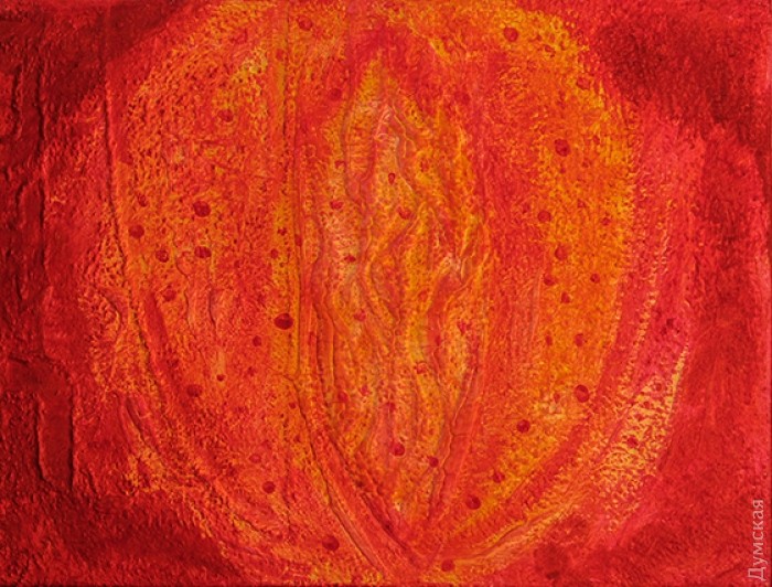 «Все прошлое как-то так сложилось, что мои знакомые девушки и женщины делились со мной своими печальными историями, — говорит Лена. – Подобные страдания начинаются с юности и не прекращаются до старости! Годы идут, женщины взрослеют, страдания меняют характер, интерес, но они продолжаются… Сначала я начала писать различные Йони на уровне какой-то игры, но постепенно втянулась. Все мое творчество постепенно окрасилось в тему Йони, я смотрела через эту призму и увлеклась. Так появилась «Снежная королева» (кто-то скажет «фригидная», но мне достаточно считать ее холодной, самовлюбленной и гордой). Есть даже с нимбом, вполне невинная. Есть зрелая, напоминающая папайю или дыню, есть в крапинку, это Йони божьей коровки, есть напоминающая мидию. Играю со смыслом, с цветом, с фактурой».