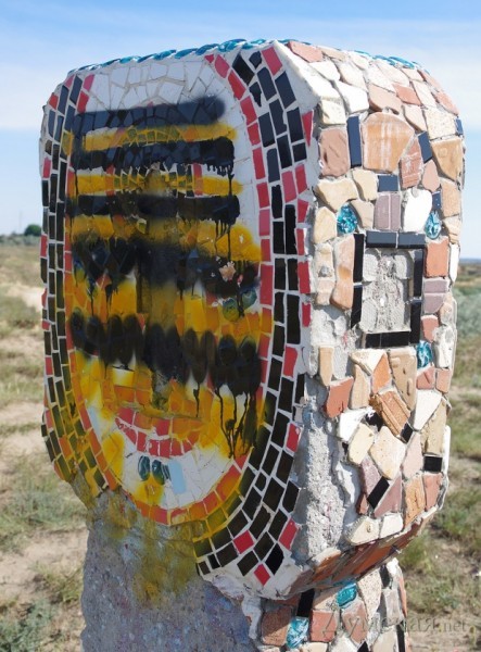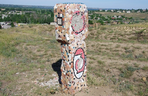 Один из мозаичных «идолов» на Жеваховой горе, о которых мы писали год назад, пал жертвой вандалов. Причем, что любопытно, как обычных варваров, так и политически ангажированных идиотов, которые посчитали уместным агитировать за Русь-матушку именно таким образом.