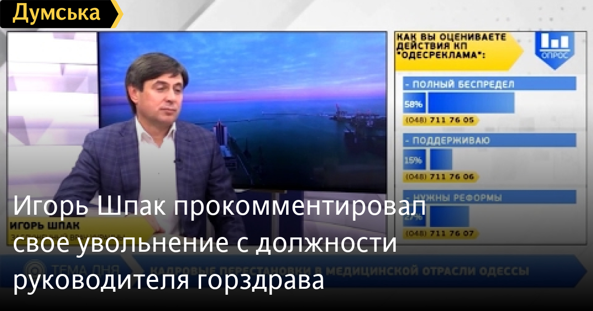 Игорь Шпак в эфире Думской ТВ прокомментировал свое увольнение с должности, вокруг отставки ходило много слухов. Бывший чиновник отметил, что принял это решение самостоятельно.