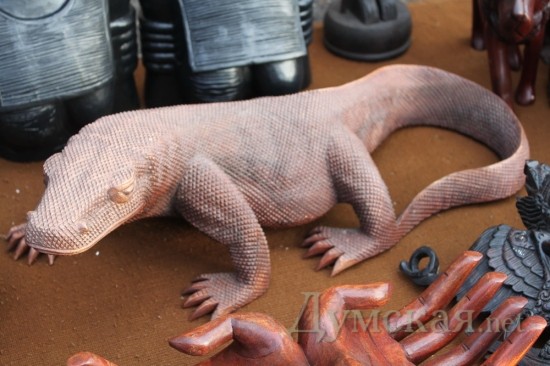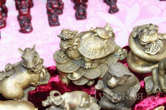 Походив по рядам со всякой всячиной, мы заметили дракона из красного дерева за 100 гривен. У того же продавца можно было купить и бронзового дракончика на мешке денег. Стоимость такого подарка составляет 300 грн.