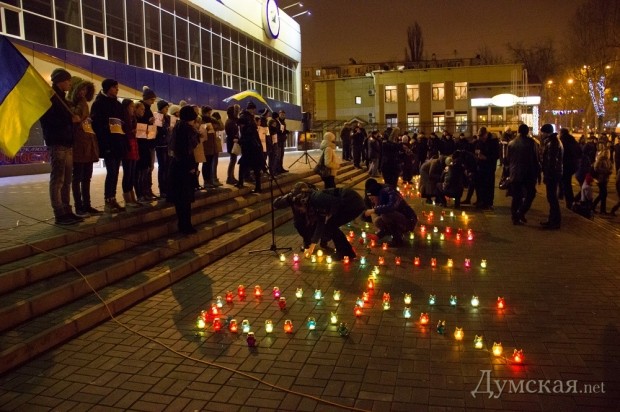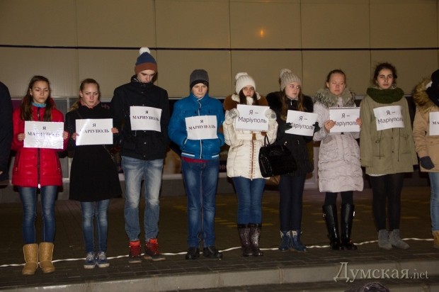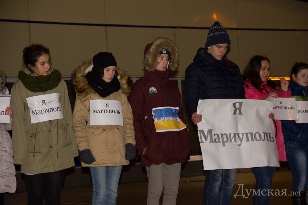 После минуты молчания горожане выложили из лампадок слова «Я - Мариуполь», сообщили «Думской» в ильичевском горсовете.
