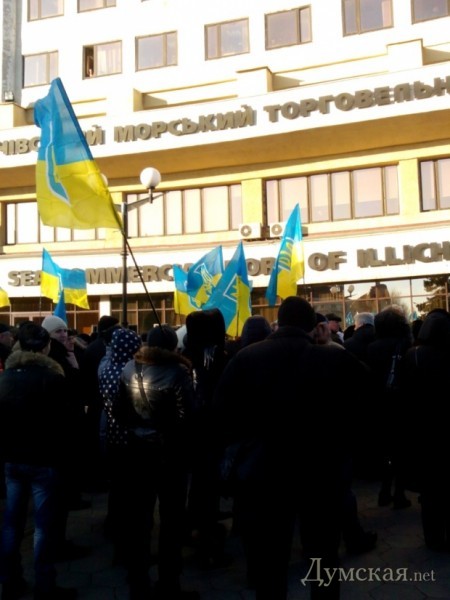 Крупная акция протеста работников Ильичевского порта прошла сегодня в городе-спутнике.