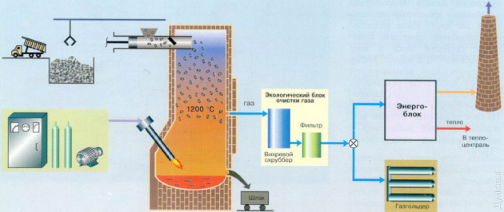 Речь идет о технологии плазменной газификации. Завод работает как плазменный реактор в высокотемпературном режиме, используется оборудование из термостойких сплавов. Эта технология считается экологически чистой (нет выбросов в атмосферу) и позволяет перерабатывать 95-97% отходов.