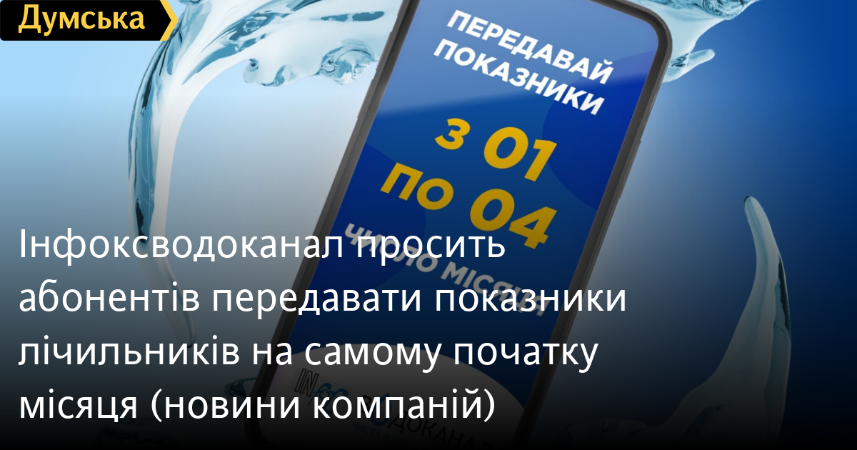 “Інфоксводоканал” просить абонентів передавати показники лічильників на самому початку місяця (новини компаній)Про необхідність передачі показників лічильників води на початку кожного місяця нагадує абонентам «Інфоксводоканал». Для зручності споживачів в компанії оптимізували терміни передачі показників лічильників холодної води. Раніше клієнти передавали їх щомісячно до 28 числа, а вже з серпня — як і по іншим комунальним послугам — з 01 по 04 число місяця, наступного за звітним. В інші дні передача показників буде неможлива. «Таким чином, одесити повинні з 01 по 04 листопада надати водоканалу показники лічильників води за жовтень. Аби уникнути навантаження на телефонні лінії контакт-центру та черг, радимо передавати показники через особистий кабінет на сайті, чатботи Щомісячна передача показників лічильників води гарантує коректність нарахувань за спожиті послуги. Якщо споживач не передає показники лічильників води, то нарахування здійснюється за середнім обсягом споживання за останній рік. Отримані рахунки слід оплатити до 20 числа, інакше виникає заборгованість за послуги водокористування. СМЕРТЬ РОСІЙСЬКИМ ОКУПАНТАМ! Помітили помилку? Виділяйте слова з помилкою та натискайте control-enter |