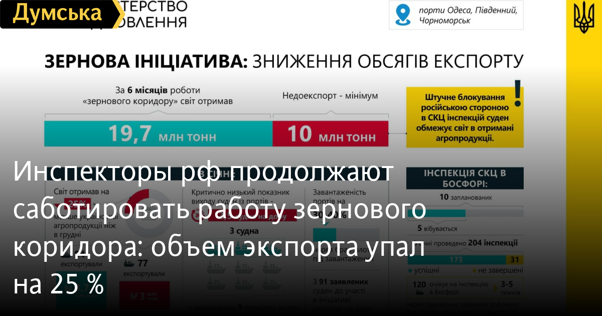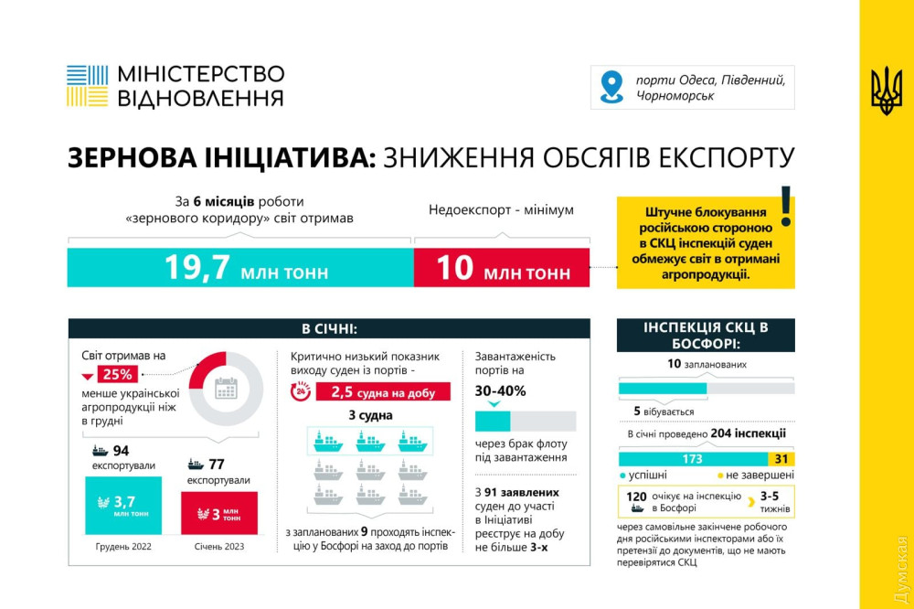 АМПУ отмечает, что за полгода порты Большой Одессы отгрузили более 19 миллионов тонн украинского продовольствия. Если бы не саботаж россиян, объем экспорта превысил бы 30 миллионов тонн.