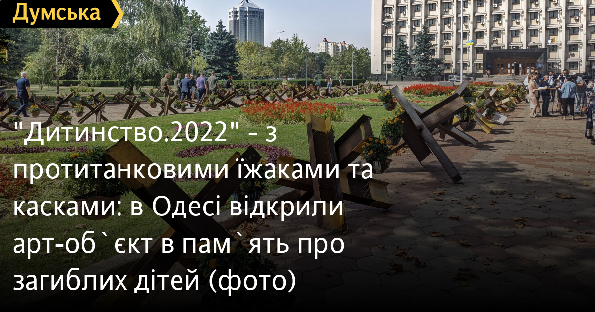 Інсталяцію «Дитинство.2022» відкрили сьогодні на площі перед будівлею Одеської обласної ради та адміністрації на проспекті Шевченка.