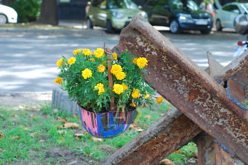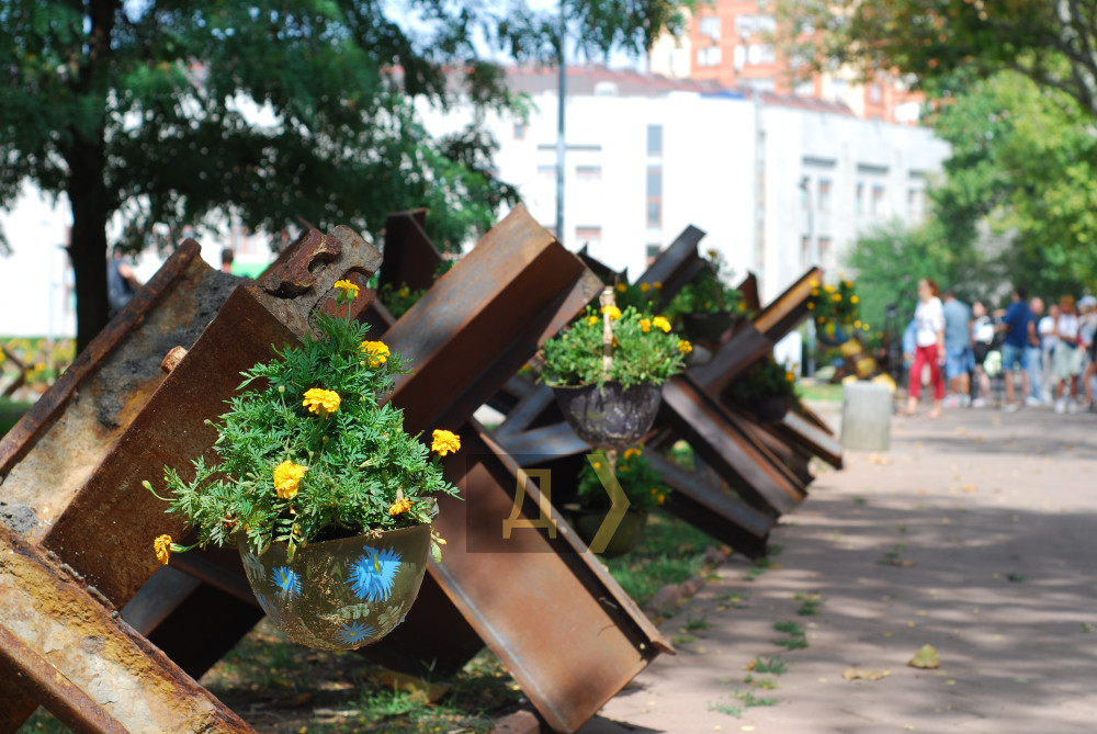 Як розповів під час відкриття автор ідеї, художник Андрій Любов, кожна з 363 армійських касок із висадженими квітами на підставках із протитанкових їжаків символізує душі дітей, які загинули з початку російського вторгнення.