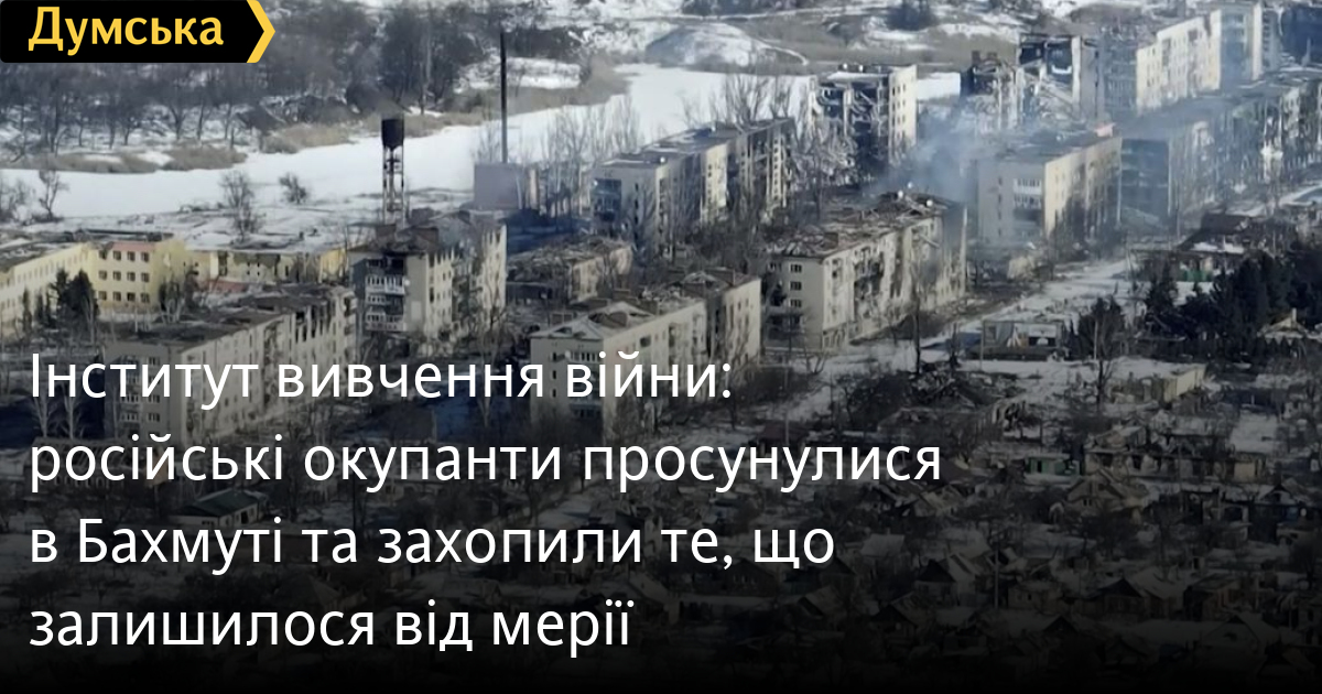«Група Вагнера, ймовірно, продовжить спроби посилити контроль над центром Бахмута і спробує просунутися на захід через щільні міські райони в напрямку Хромового», — підкреслюється у звіті.