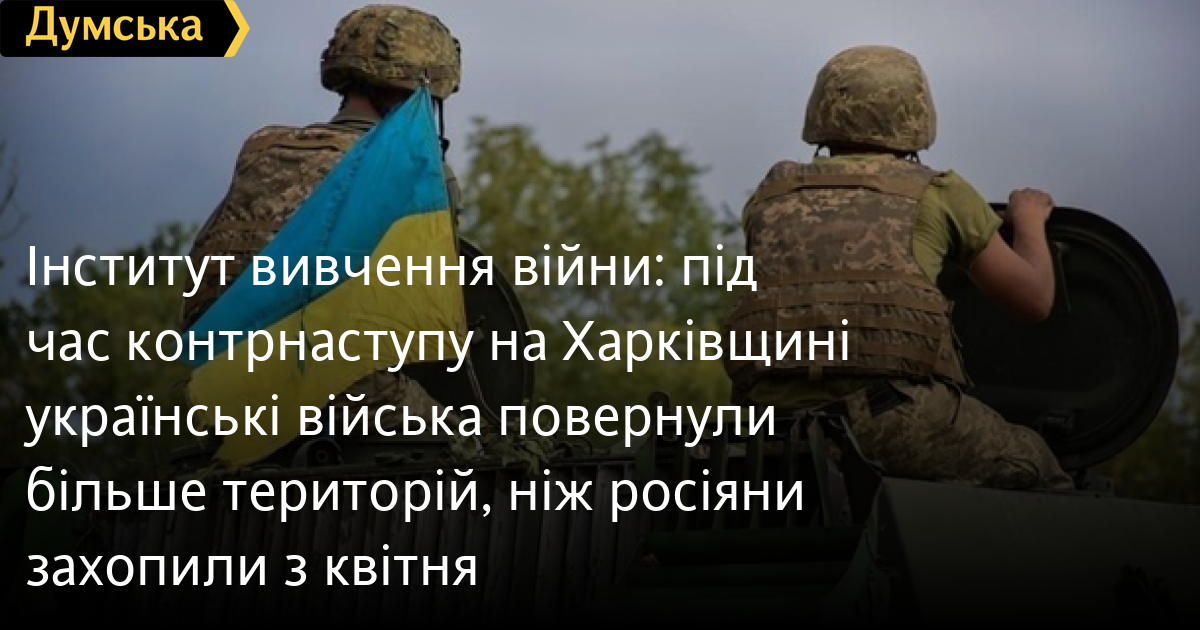Інститут вивчення війни: під час контрнаступу на Харківщині українські війська повернули більше територій, ніж росіяни захопили з квітняЗа чотири дні контрнаступу на Харківщині українські війська відвоювали понад 3000 квадратних кілометрів – це більше, ніж російські нацисти змогли захопити з квітня. Про це повідомляють аналітики американського Інституту вивчення війни. Вони констатують, що українські війська вже могли повернути під контроль Ізюм або зроблять це найближчими 48 годинами. На думку військових експертів, повернення Ізюму стане найбільшою українською військовою перемогою після вигнання окупантів із Київської області. Зазначається, що російські війська нічого не роблять, щоб зупинити український наступ у районі Ізюму, а панічно тікають, щоб не потрапити в оточення. Заходи щодо організованої евакуації окупантів також були провалені. В ISW фіксують, що українська армія просувається не лише на ізюмському напрямі. Північніше наші війська звільнили селище Великий Бурлук, яке знаходиться за 15 км від державного кордону. Аналітики відзначають провал російської інформаційної політики через поразки у Харківській області. міністерство оборони росії назвало розгром своїх частин «перегрупуванням». Це викликає все більше сумнівів, побоювань та чвар у російському суспільстві. СМЕРТЬ РОСІЙСЬКИМ ОКУПАНТАМ! Помітили помилку? Виділяйте слова з помилкою та натискайте control-enter |