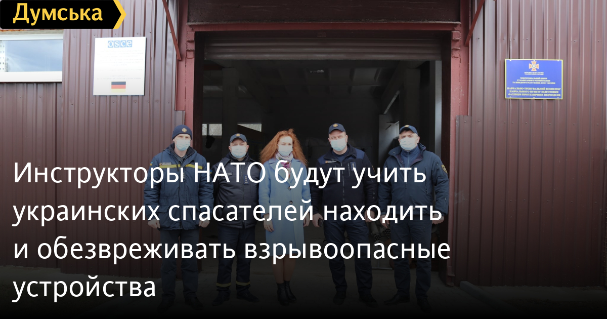Инструкторы НАТО будут учить украинских спасателей находить и обезвреживать взрывоопасные устройстваПредставители НАТО будут обучать украинских спасателей в рамках спецтренинга по обезвреживанию взрывоопасных устройств. Об этом сообщила пресс-служба МВД. Тренинг проведут в рамках реализации Трастового фонда Североатлантического альянса по обезвреживанию взрывоопасных устройств и противодействию самодельной взрывчатке. В нем поучаствуют сотрудники Межрегионального центра гуманитарного разминирования и быстрого реагирования ГСЧС Украины. Уточняется, что иностранные инструкторы планируют отработать с украинцами поисковые операции в зданиях и в пределах населенных пунктов. Агентство НАТО по поддержке и снабжению (NSPA) уже передало оборудование, которое будет использоваться во время тренинга. Специально для учений ГСЧС создает макет здания, который понадобится для отработки маневров. Кроме того, завершается реконструкция старого ангара в соответствии с техзаданием NSPA. Напомним, ранее мы писали, что, по данным соцопроса, в Украине 64% населения не против вступления в НАТО, но многие не верят, что получится. СМЕРТЬ РОССИЙСКИМ ОККУПАНТАМ! Заметили ошибку? Выделяйте слова с ошибкой и нажимайте control-enter |