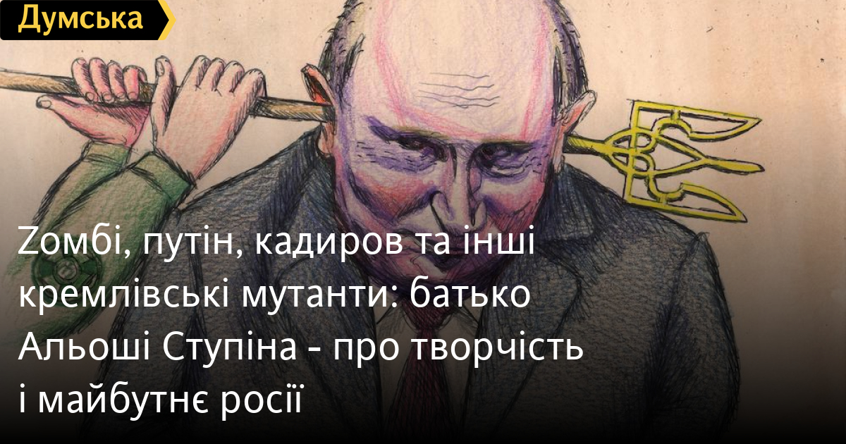 Спеціальний кореспондент «Думської» Георгій Ак-Мурза, як і багато наших читачів, любить карикатуру. Один із його улюблених авторів, Альоша Ступін, малює в стилі дитячого примітивізму, відверто знущаючись з кремлівських монстрів, ватних зомбі, «іхтамнетів» і підданих путіна «нас-то-за-что». Георгій поспілкувався з батьком обдарованого маленького малювальника — художником Ігорем Поночевним. Який надихає і водить пензлем у буквальному сенсі свого нащадка Ступіна. А також пише оповідання і навіть ікони. Велика частина творчості Ігоря присвячена боротьбі з російськими Zомбі. Обережно, у тексті присутня ненормативна лексика. «Думська». Ігорю, розкажи про себе нашим читачам. Де народився, де навчався. І в підсумку — де став у пригоді? Ігор Поночевний. Народився в Пензі, проїздом. У 1967 р. Усе життя прожив у Санкт-Петербурзі. Усе дитинство провів в Україні, серед рідні: Киріївка (Любарський район Житомирської області), Ірпінь, Київ, Шепетівка, Володимир-Волинський, Львів. Малював із дитинства, закінчив художнє училище Сєрова. Після армії працював художником. Писав полотна для музеїв. Потім вступив до університету і став юристом. Працював у банку. Після березня 2014 року звільнився, думаючи, що буде велика війна. Виїхав із Росії у 2015. Повертатися не хочу. «Д». Альоша Ступін — коли народився цей чарівний малюк (насправді псевдонім Ігоря, — Ред.)? Як Альоша почав малювати на злободенні теми? Кажуть, він якось «помер» кілька років тому. Але ти зробив диво і воскресив хлопця? І. П. Альоша Ступін народився наступного дня після анексії Криму. Як реакція на ейфорію серед росіян, яка мене вразила. Малювати став практично щодня. Життя в США вимагало багато і важко працювати, і часу на творчість залишалося мало. Тут ти або заробляєш цим на життя, або чимось іншим, а оскільки малюнки мало купували, то я був змушений менше малювати. Тому через кілька років я ненадовго зупинив проєкт, але потім відновив. Після початку повномасштабного вторгнення малюю майже щодня (не міг не малювати), і це стало основною моєю роботою. «Д». Ти пишеш оповідання, які часто починаються з «В однієї жінки чоловік пішов ». Це просто літературний спосіб, чи щось особисте? І.П. Це радше літературний спосіб, який одразу задає вектор тексту — ліричний. Любовні переживання пізнавали всі люди, і читач одразу налаштовується на певний тембр оповіді. По суті, це зручна преамбула тексту, стиснута до однієї короткої фрази.