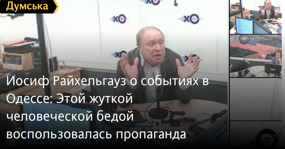 О своем видении трагических событий, которые произошли в Одессе 2 мая в интервью «Эхо Москвы» рассказал руководитель театра «Школа современной пьесы», народный артист России Иосиф Райхельгауз.