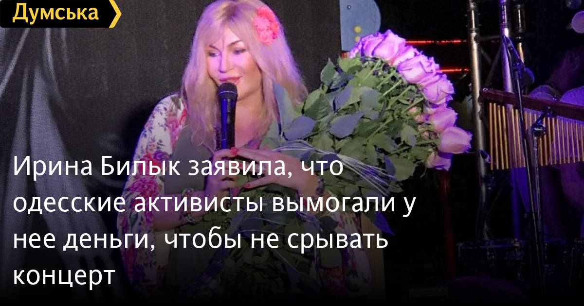 Ирина Билык заявила, что одесские активисты вымогали у нее деньги, чтобы не срывать концерт