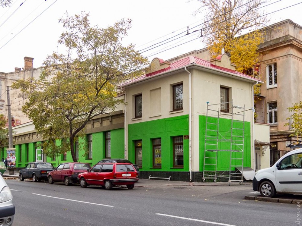 Дом №26 по Канатной окрасили в ярко-зеленый цвет. Очевидно, там разместится отделение одного национализированного недавно банка — это его фирменный колор.
