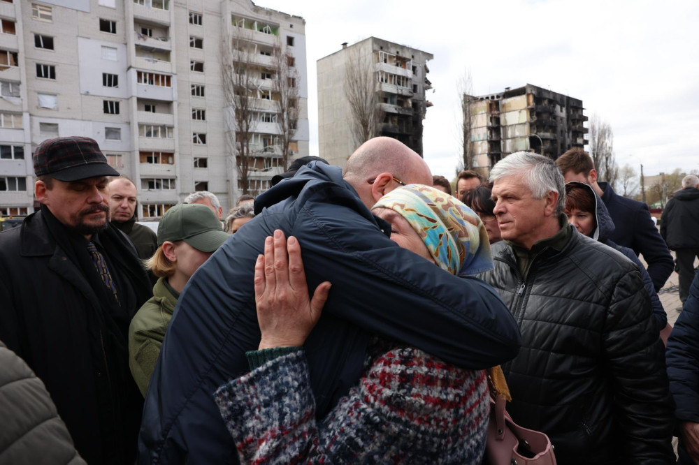 Он посетил разрушенную российскими оккупантами Бородянку, после чего написал: «История не забудет военные преступления, которые здесь были совершены. Не может быть мира без справедливости».