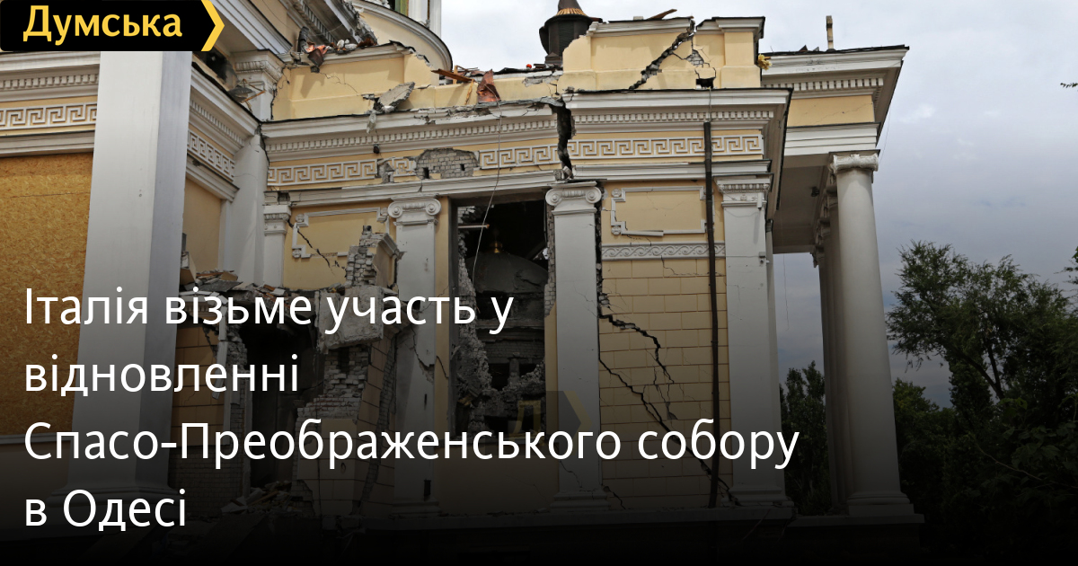 Італія планує зробити свій внесок у відновлення Спасо-Преображенського собору, пошкодженого російськими ракетами.