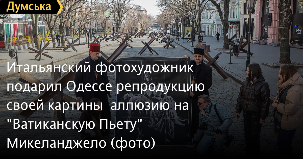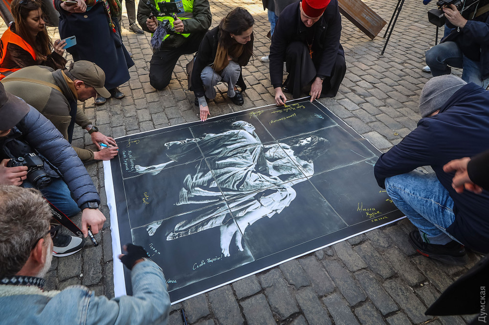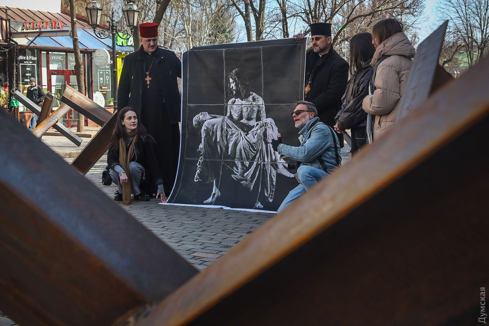 «Это очень красивый символ поддержки от Итальянской Республики, от католической Италии нашему городу и нашей стране, — рассказал одесский экзарх УГКЦ Михаил Бубний. — Сегодня Одесса имеет возможность видеть вторую Пьяту — воскресший Христос держит Богородицу. Я верю, что это послание от итальянского народа будет для нас предвестником нашей победы и мира в Украине».
