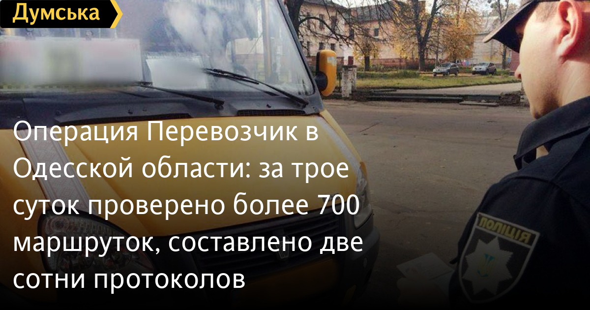 За трое суток проведения операции «Перевозчик» в Одесской области проверено 757 автотранспортных средств, из которых выявлено 14 неисправных, 6 переоборудованы из грузовых в пассажирские, составлено 215 админпротоколов, привлечено к административной ответственности шесть должностных лиц АТП за нарушения, в том числе за выпуск маршруток на линию с пьяным водителем.