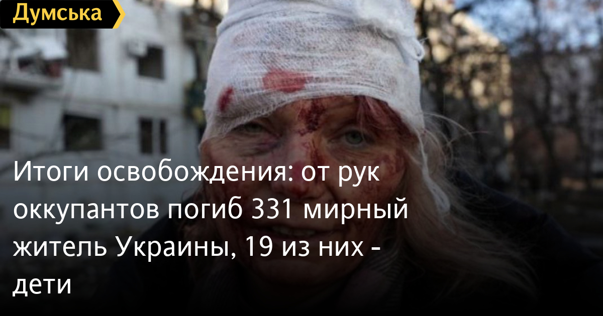 С начала полномасштабного вторжения России от рук оккупантов погиб 331 мирный житель, из них 19 - дети.