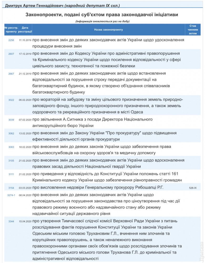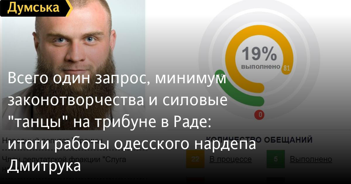 В Одессе же Дмитрук уделял внимание сомнительной стройке на Глушко, 17А, обещая местным жителям, что не допустит незаконного строительства. Осенью занимался озеленением Киевского района и построил деревянный домик-будку на одной из детских площадок округа, а в январе принял участие в пикете возле Киевской райадминистрации и молча наблюдал, как люди нарушают правила и перекрывают дорожное движение.