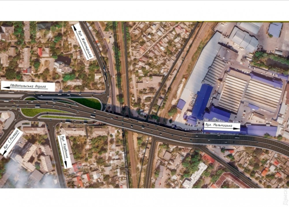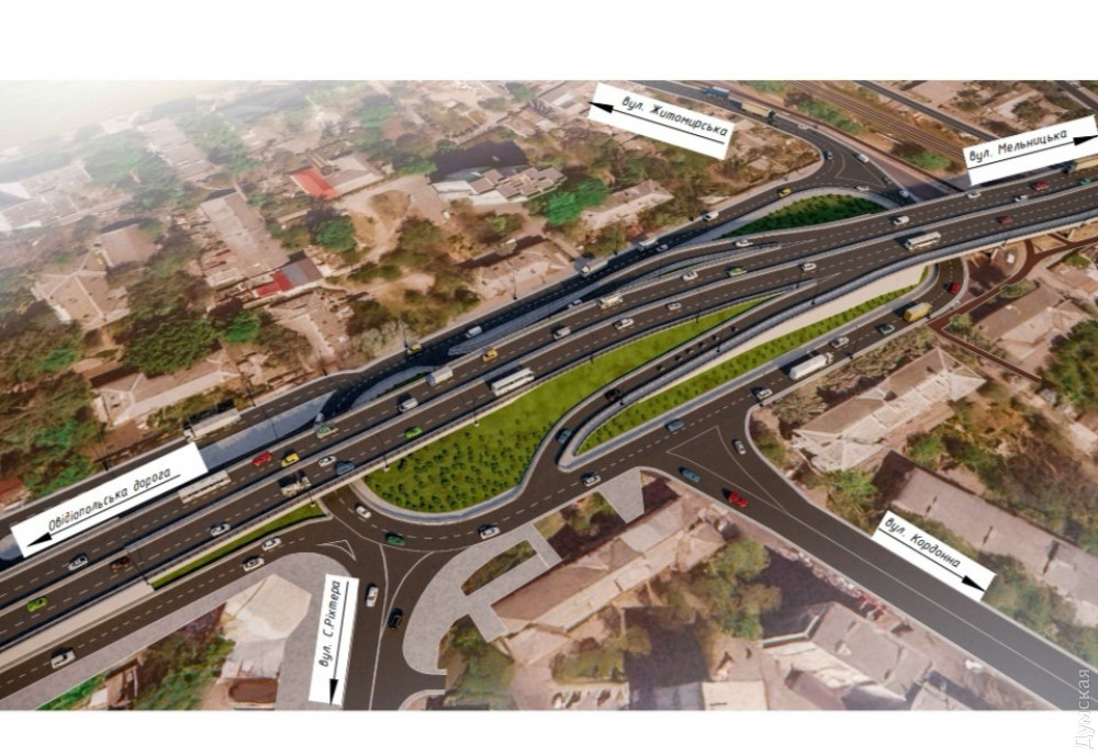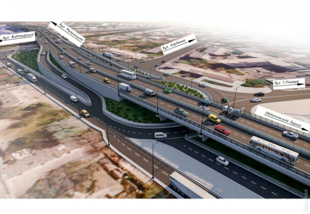 В горсовете сообщили, что путепровод удлинят в сторону Овидиопольской дороги, а под ним расширят проезд и организуют круговое движение.