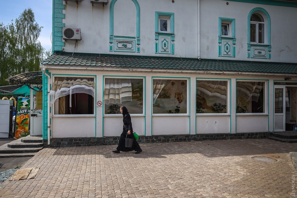 Как передает корреспондент «Думской», на территории обители пострадало несколько строений, включая храмы. Монахи собственными силами ликвидируют последствия обстрела: вынимают остатки выбитых стекол, собирают осколки ракеты и подметают территорию.