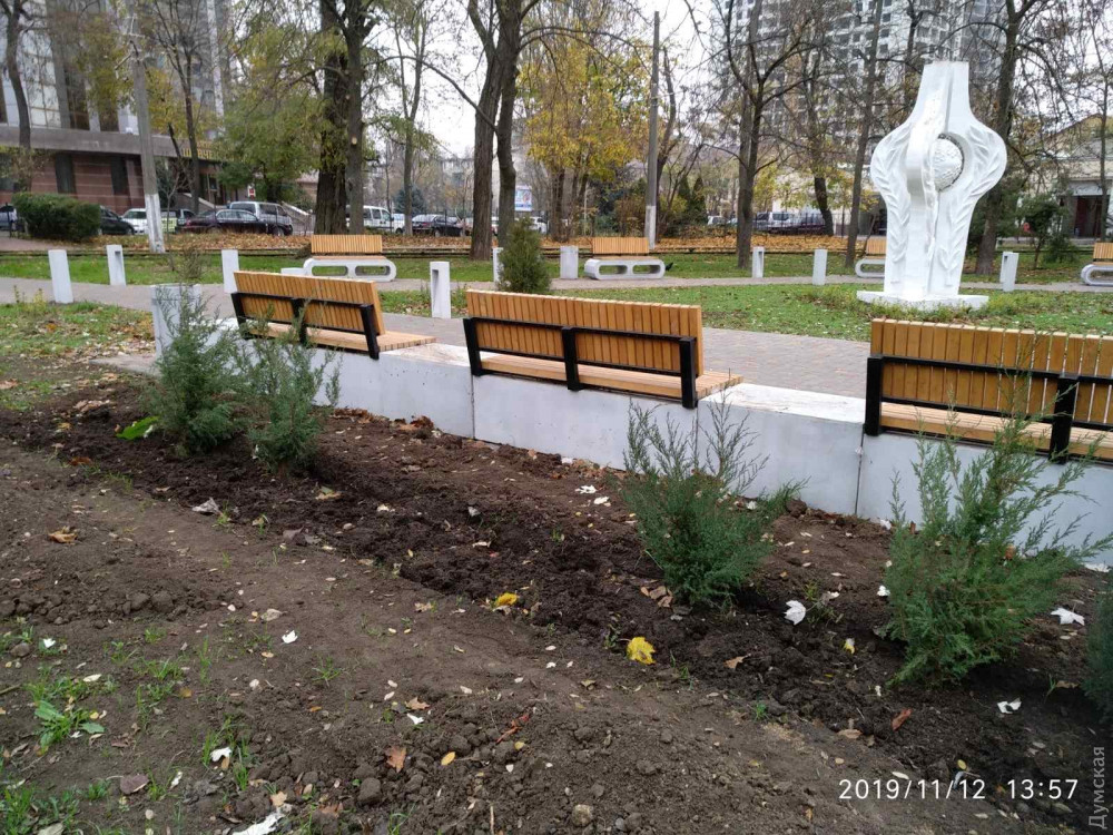 Напомним, сквер «За мир», ранее известный одесситам как «Ботанический треугольник», благоустроили за счет бюджета этим летом. Проект оказался победителем народного голосования по итогам 2018 года и на его реализацию выделено 1 миллион 300 тысяч гривен.