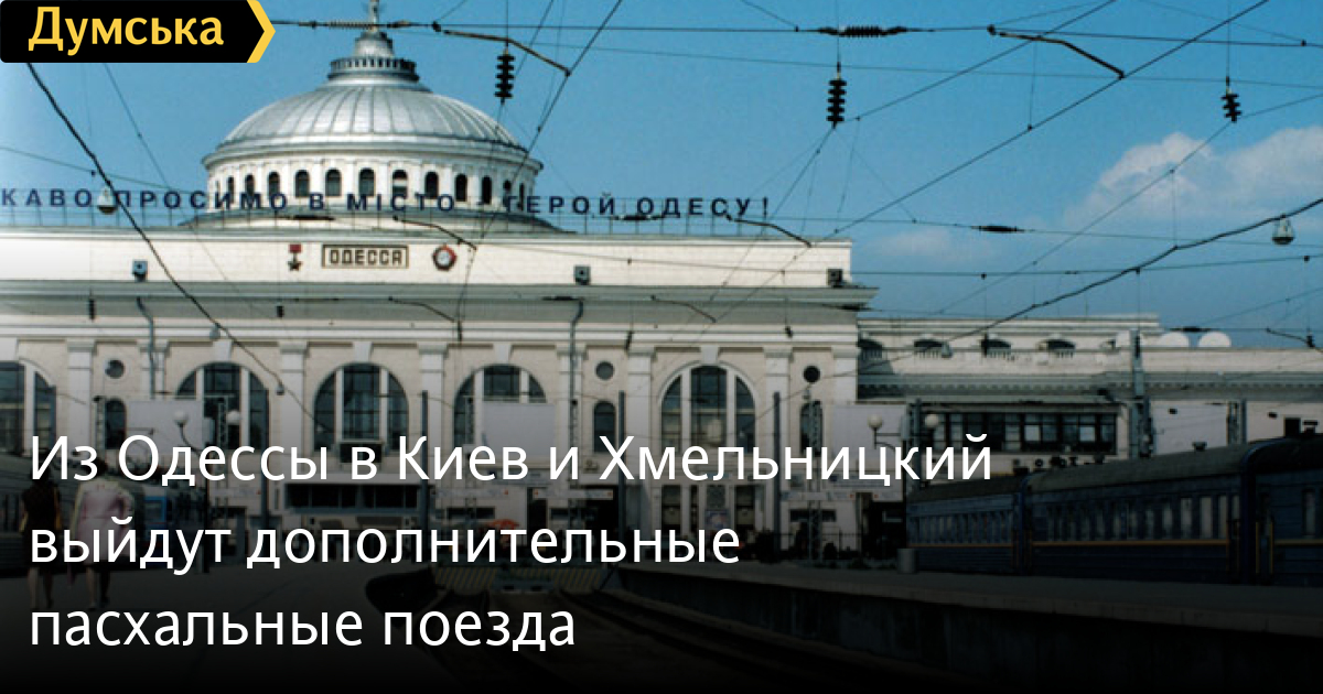 Также введён дополнительный состав по маршруту Одесса — Хмельницкий. Из точки отправления он будет выходить 14-го и 16-го апреля в 13:34, прибывать в Хмельницкий – в 20:43. Отправление в обратном направлении 15-го и 17-го апреля в 22:19, прибытие в Одессу – в 05:45.
