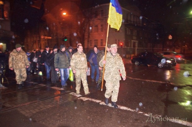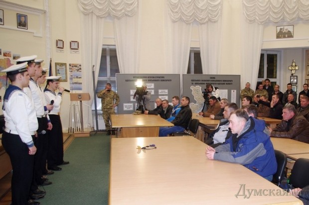 По случаю отправки команды военнослужащих в Десну в областном военкомате прошли торжественные мероприятия. В частности, перед защитниками Родины с патриотическим концертом выступили артисты Центра военно-музыкального искусства Военно-морских сил Украины. После концерта мобилизованные прошли маршем от комиссариата до железнодорожного вокзала.