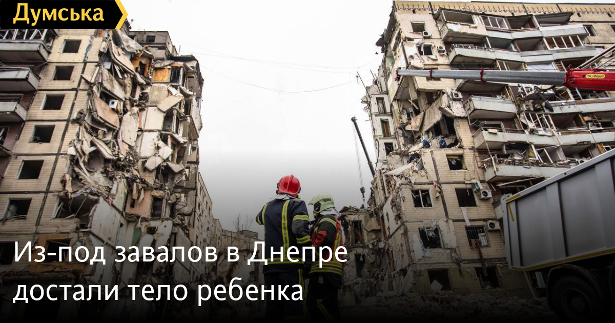 Тіло дитини дістали рятувальники вранці 17 січня з-під завалів зруйнованого російською ракетою житлового будинку у Дніпрі. Про це повідомив заступник керівника Офісу президента Кирило Тимошенко. Таким чином кількість загиблих зросла до 41, серед них четверо дітей. Травмовано 79 людей, серед яких 16 - діти, а врятовано 39 осіб. СМЕРТЬ РОСІЙСЬКИМ ОКУПАНТАМ! Помітили помилку? Виділяйте слова з помилкою та натискайте control-enter |