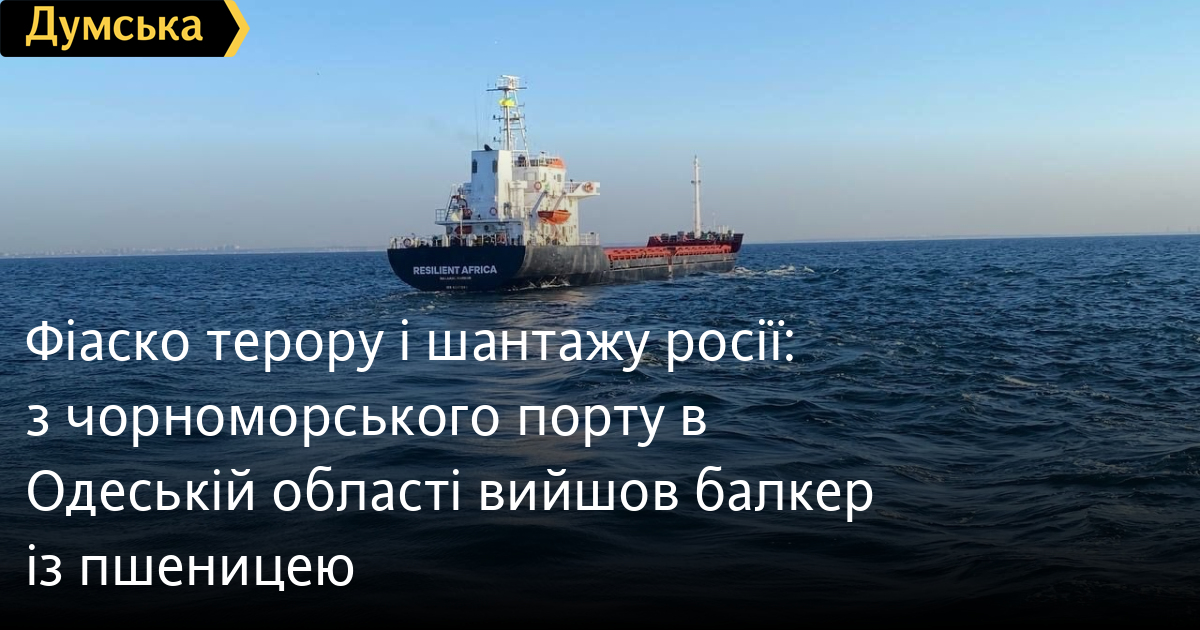 Судно RESILIENT AFRICA з трьома тисячами тонн пшениці вийшло з порту Чорноморськ і рухається в напрямку Босфору.