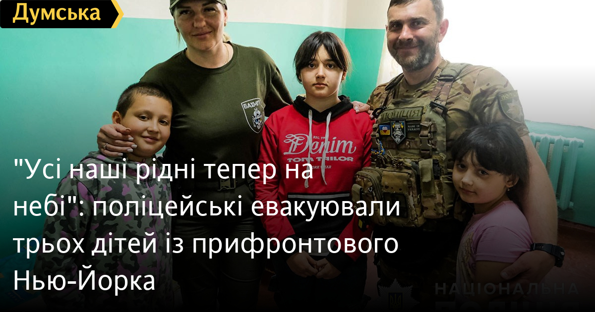 Трьох осиротілих дітей евакуювали з Нью-Йорка Донецької області бійці екіпажу «Білий Ангел». Поблизу будинку, де жили 11-річна Яна, 9-річний Денис і 7-річна Аня, тривають активні бойові дії.