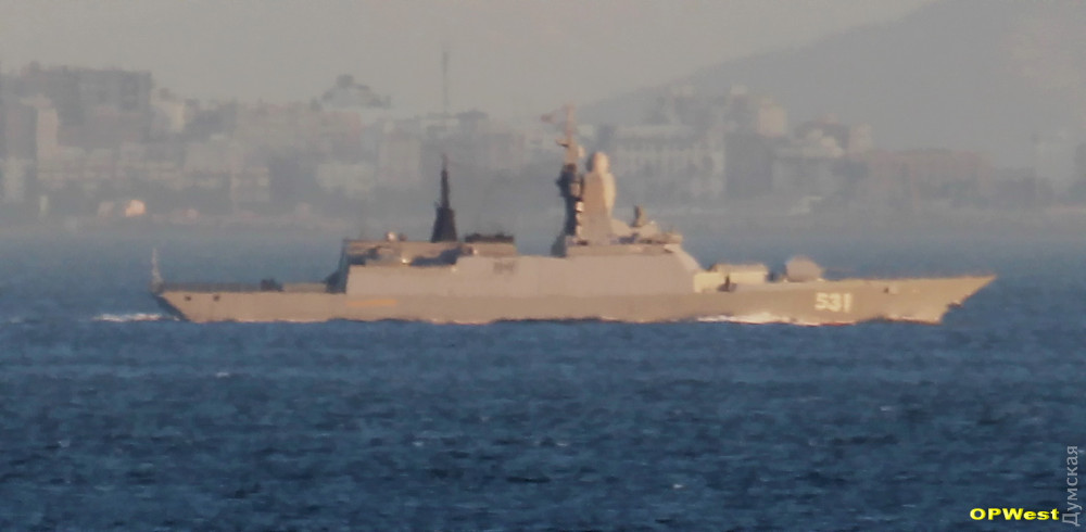 Шипспоттер Michael J Sanchez повідомив, 22 квітня із Середземного моря протокою Гібралтар вийшли ракетний фрегат «Адмирал Григорович», ракетні корвети «Сообразительный» і «Стойкий», а також військовий танкер «Кола».