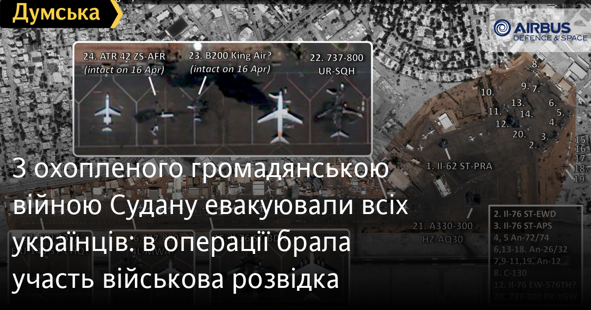 З охопленого громадянською війною Судану евакуювали всіх українців: в операції брала участь військова розвідка138 іноземних громадян, зокрема 87 українців, вдалося евакуювати із Судану, охопленого громадянською війною. Решта 51 особа — громадяни Грузії та Перу, повідомляє Головне управління розвідки Міноборони України. Основна частина українців — пілоти та технічний персонал української авіакомпанії SkyUp, два літаки якої було віддано в так званий «мокрий» лізинг (разом з екіпажами) у розпорядження суданської авіакомпанії Sun Air. Пресслужба SkyUp сьогодні вдень повідомила, що всі співробітники авіакомпанії вивезені на територію Єгипту. «Всіх співробітників вивезли на територію Єгипту спільними зусиллями МЗС України, Головного управління розвідки (ГУР) Міністерства оборони України, почесного консульства України в Судані, посольства України в Єгипті та інших дипломатичних представництв України. Це була складна багатоетапна операція під наглядом кризового центру авіакомпанії та представників державних установ», — ідеться в заяві. Авіакомпанія зазначає, що стан її літаків невідомий, хоча на супутникових знімках добре видно, що один із них, із реєстраційним номером UR-SQH, повністю знищений пожежею. Другий — UR-SQA, стоїть на сусідній стоянці і, ймовірно, теж зазнав пошкоджень. За попередньою інформацією, у міжнародному аеропорту столиці Судану Хартумі на цей момент вважаються згорілими або пошкодженими 27 літаків, один з яких — борт нашої авіакомпанії. Знищеним у Хартумі вважається також літак Іл-76ТД білоруської вантажної авіакомпанії Belcanto Airlines з реєстраційним номером EW-576TH. СМЕРТЬ РОСІЙСЬКИМ ОКУПАНТАМ! Помітили помилку? Виділяйте слова з помилкою та натискайте control-enter |