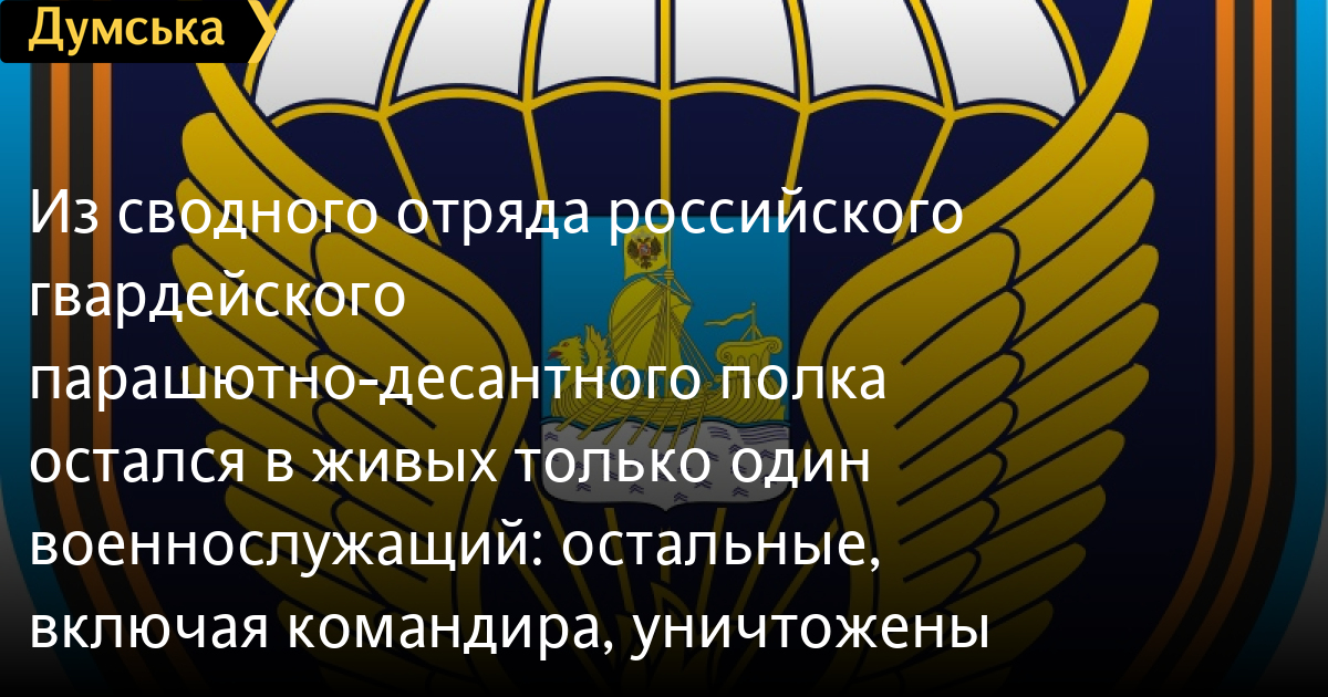 Из сводного отряда 331-го гвардейского парашютно-десантного костромского полка российских нацистов, который принимал участие в боевых действиях на киевском направлении, остался в живых только один военнослужащий, и тот ранен и находится в госпитале.