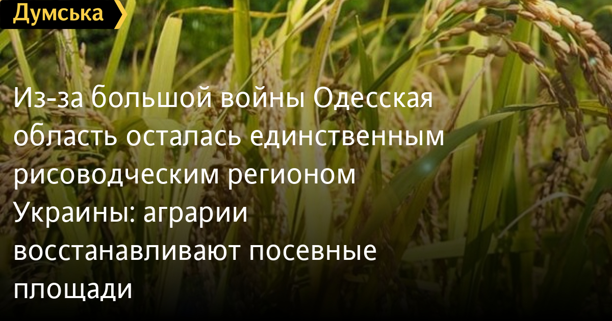 Из-за большой войны Одесская область осталась единственным рисоводческим регионом Украины: аграрии восстанавливают посевные площадиОдесская область осталась единственным регионом Украины, где выращивают рис. Об этом в комментарии Delo.ua сообщил первый заместитель председателя Госрыбагентства Тарас Кот – его ведомство управляет водохозяйственными организациями, которые подают воду на рисовые поля, поэтому оперирует точными данными относительно посевных площадей. До полномасштабного вторжения рис выращивали еще и в Херсонской области (а до 2014-го – и в Крыму) – на площади 6,5 тыс. гектаров. В 2022 году на деокупированной территории этого региона воду в оросительные системы не подавали. Не планируют этого делать и в нынешнем, 2023-м – из-за отсутствия заявок от сельхозпроизводителей. В Одесской области в 2021 году рис выращивали на площади 4,7 тыс. га. В 2022 году из-за большой войны этот показатель сократился почти в шесть раз – до 0,8 тыс. га. На 2023-й Госрыбагентство заключило с аграриями договоры на поставку воды на 2,2 тыс. га рисовых полей. Производство украинского риса в 2022 году сократилось в 16 раз - с 49,5 тыс. до 3,1 тыс. тонн. Также из-за российской агрессии в восемь раз сократился и его экспорт — до 1,3 тыс. тонн с 10,3 тыс. тонн в 2021 году. Стремительное падение частично компенсировалось ростом импорта риса на 6%, до 86,9 тыс. тонн с 81,8 тыс. тонн, но сокращение производства привело к уменьшению общего фонда потребления по стране на 27% - до 88,7 тыс. тонн с 121 тыс. тонн. СМЕРТЬ РОССИЙСКИМ ОККУПАНТАМ! Заметили ошибку? Выделяйте слова с ошибкой и нажимайте control-enter |