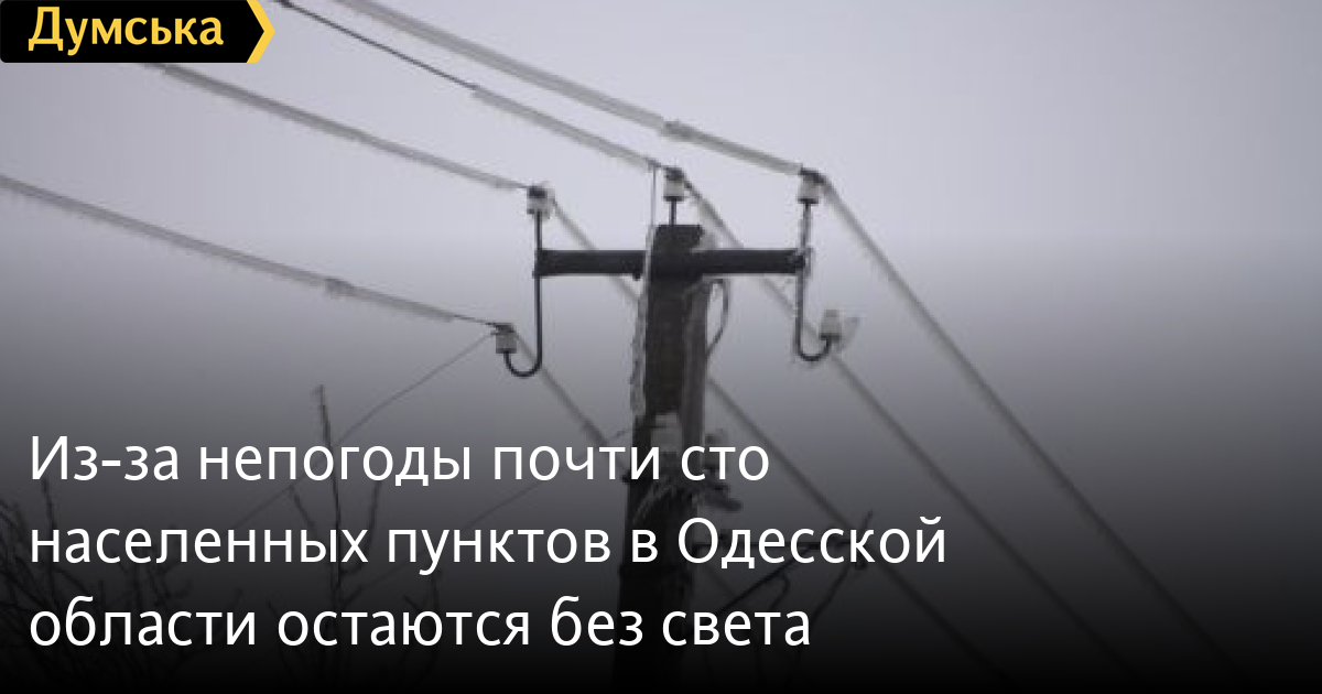 Через негоду майже сто населених пунктів в Одеській області залишаються без світлаЕлектропостачання відсутнє майже в ста населених пунктах Одеської області через наслідки негоди в регіоні. «Станом на 08:30 10 січня без світла залишаються 97 населених пунктів, із них 1 - частково», — уточнили у пресслужбі ДТЕК Одеські електромережі. Там зазначили, що ліквідація наслідків стихії триває. За минулу добу енергетики відремонтували 78 повітряних ліній, 920 трансформаторних підстанцій і повернули світло для 35 006 клієнтів у 322 населених пунктах області. «Енергетики докладають максимум зусиль для відновлення електропостачання. На лініях і підстанціях працюють усі необхідні фахівці», — запевнили в компанії. Помітили помилку? Виділяйте слова з помилкою та натискайте control-enter Новини по цій темі: 7 листопада 2025: До +16, але з дощами: в Одесі прогнозують погіршення погоди 29 жовтня 2025: Котельні готові: Одеса увімкне опалення за два тижні, а початок листопада буде аномально теплим 6 жовтня 2025: Через погіршення погоди школи та садочки Одеської області переводять на дистанційне навчання 1 жовтня 2025: Катастрофа, яку можна було попередити (блог) |